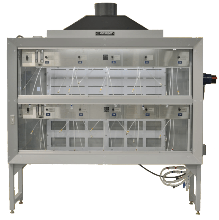Cortest designs custom Fume Hoods to house Proof Ring Systems, Hydrogen Induced Cracking (HIC) Tanks, Autoclaves, or Load Frame Test Systems. These fume hoods are designed to safely contain any noxious gases that may be released during a test and vented through scrubber and neutralization systems.
