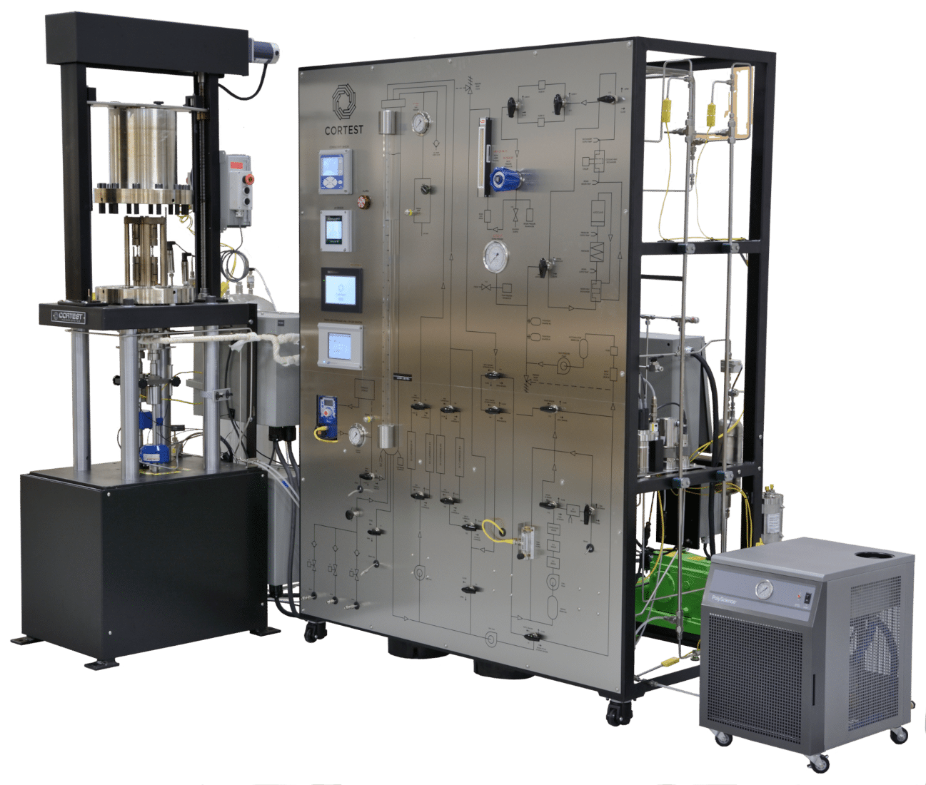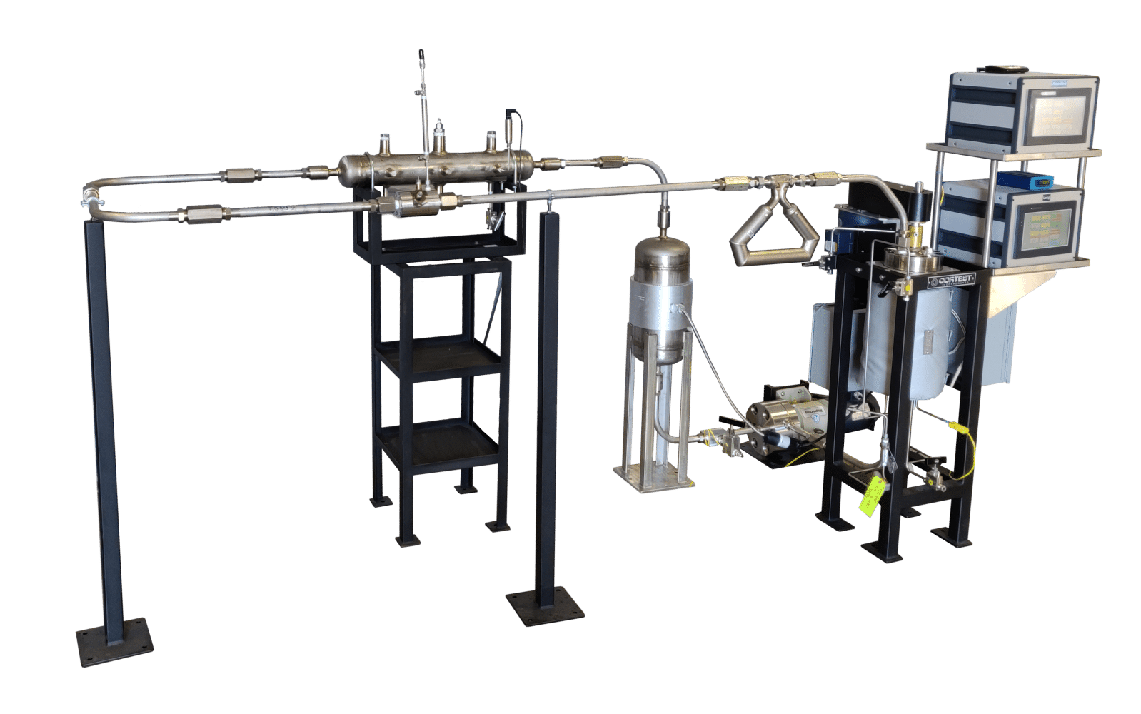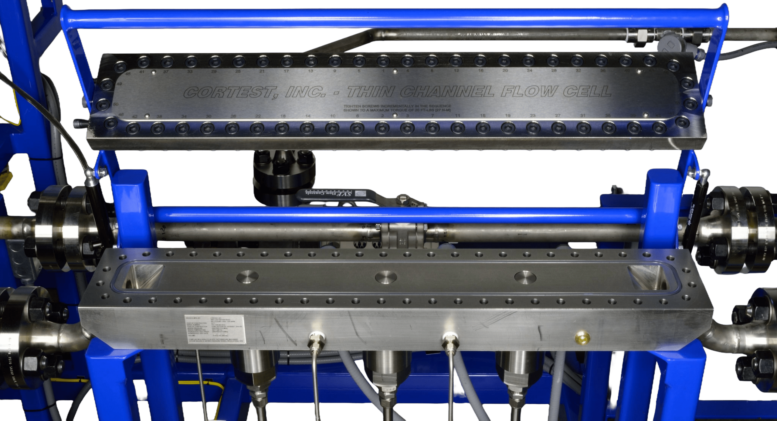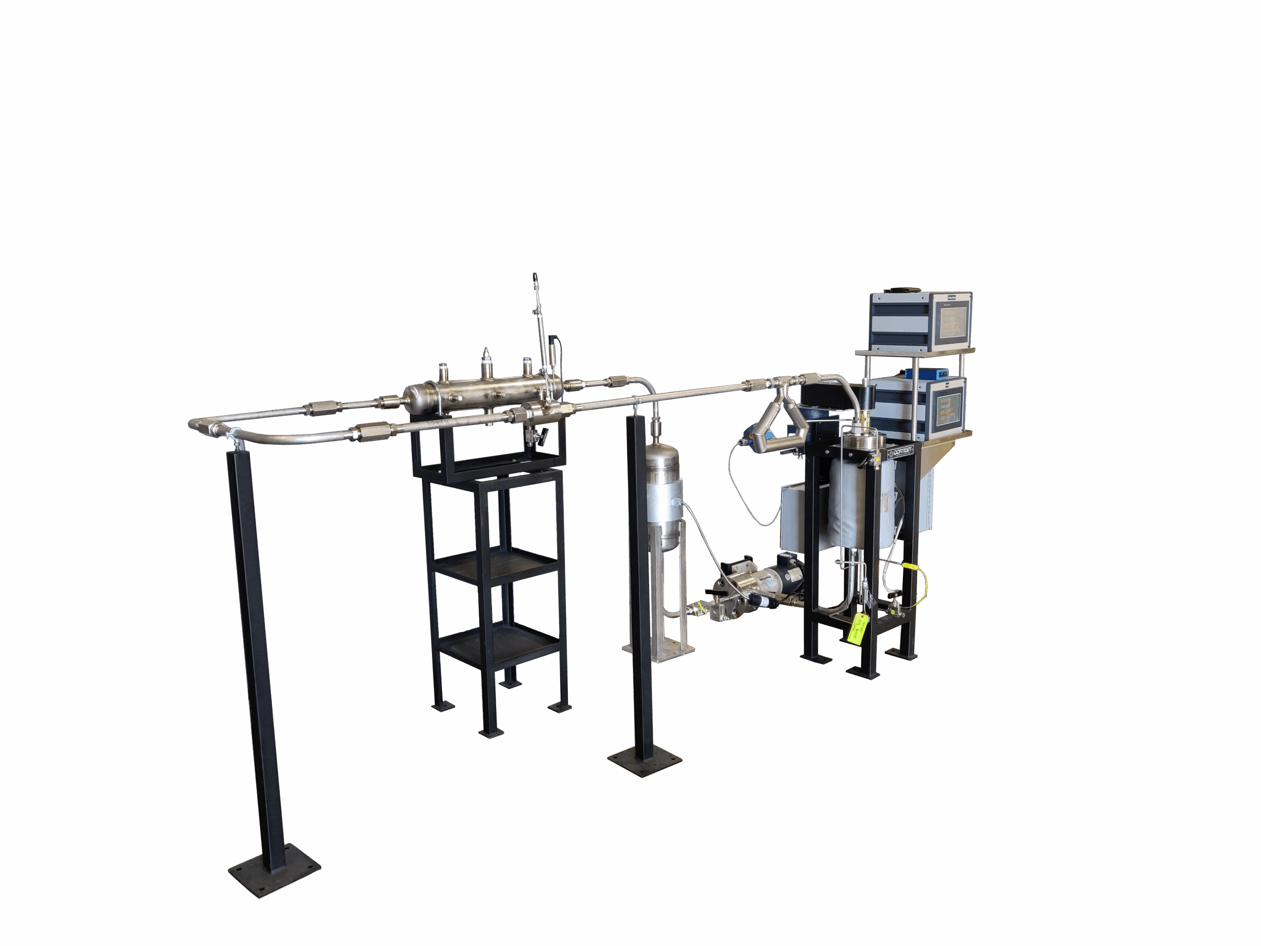 Cortest Flow Loop Systems are used to simulate flow conditions inside pipelines and other high flow environments. A wide range of applications can be simulated, such as: Single Phase Liquid Flow, Single Phase Gas Flow, Multiphase (Liquid/Gas) Flow, Laminar Flow, and Various Hydrodynamic Conditions including Corrosion Flow, Slug Flow, Annular Flow, and Stratified Flow. Flow Loops are used to measure the effectiveness of Corrosion Inhibitors and Drag Reducers in various environments and flow regimes. Analysis capabilities include Laser Doppler, Particle Image Velocimetry, Particle Shadow Sizing, Tomography, Sheer Stress measurements, and others.