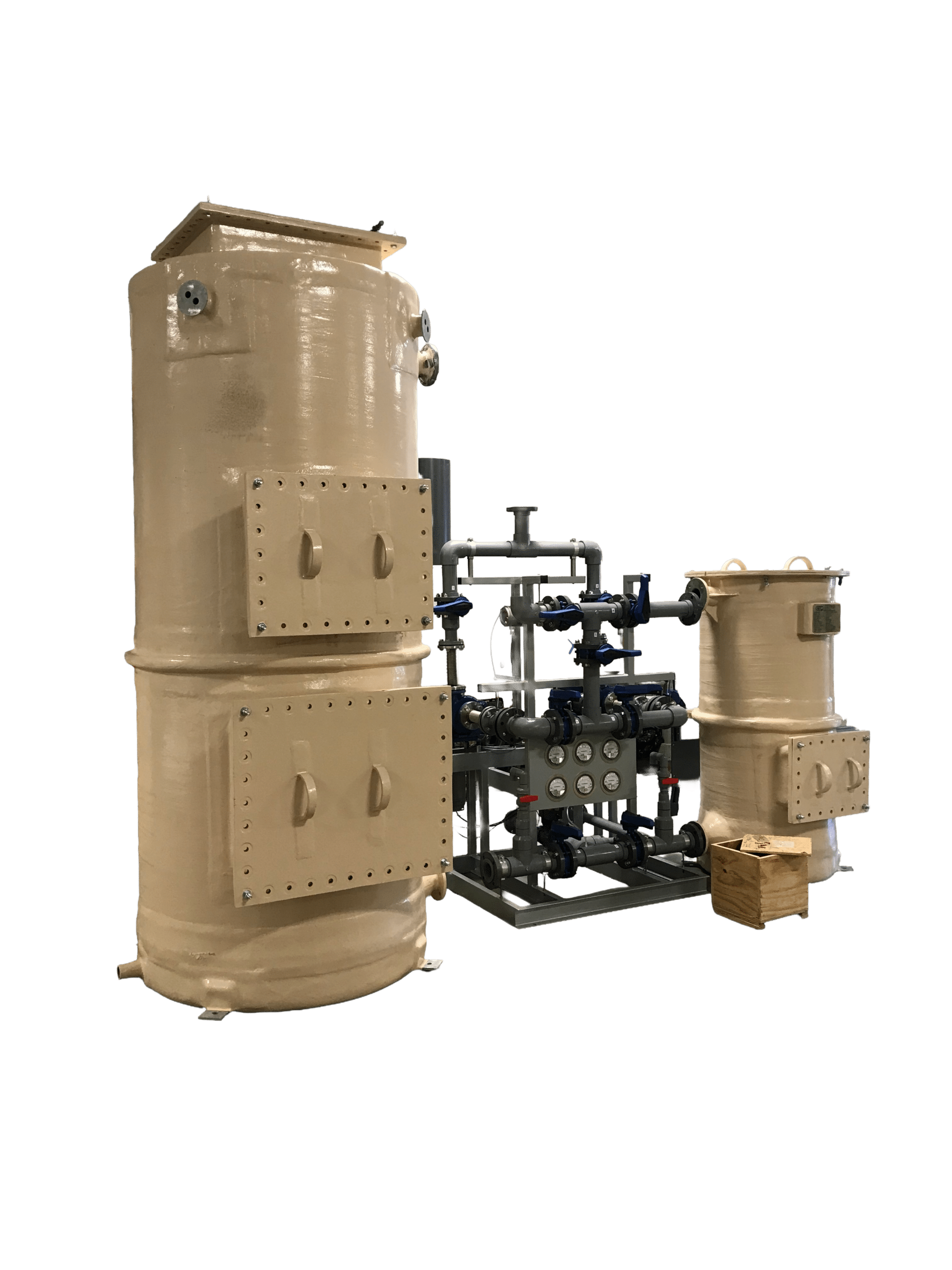 A complete system would include test media preparation and storage tanks, multiple ambient test vessels, a fume hood, ventilation system, plumbing for inet and test gasses, and H2S scrubber.